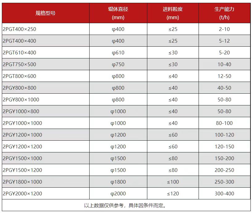 面對(duì)如此優(yōu)勢的碳素對(duì)輥破碎機(jī),很多客戶想到的是購買,那么在購買之前,對(duì)輥破碎機(jī)都有哪些型號(hào),規(guī)格參數(shù)、生產(chǎn)能力又有什么區(qū)別: